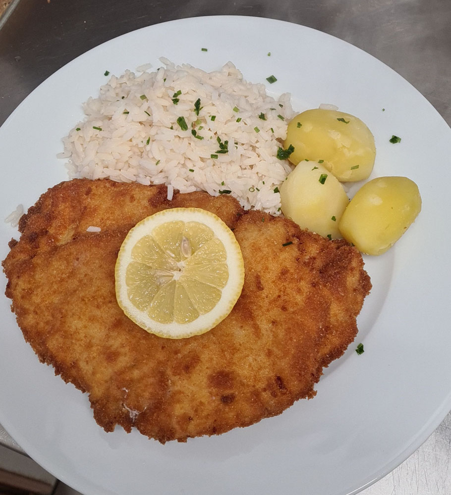 Schnitzel oder Cordon Bleu mit Reis,