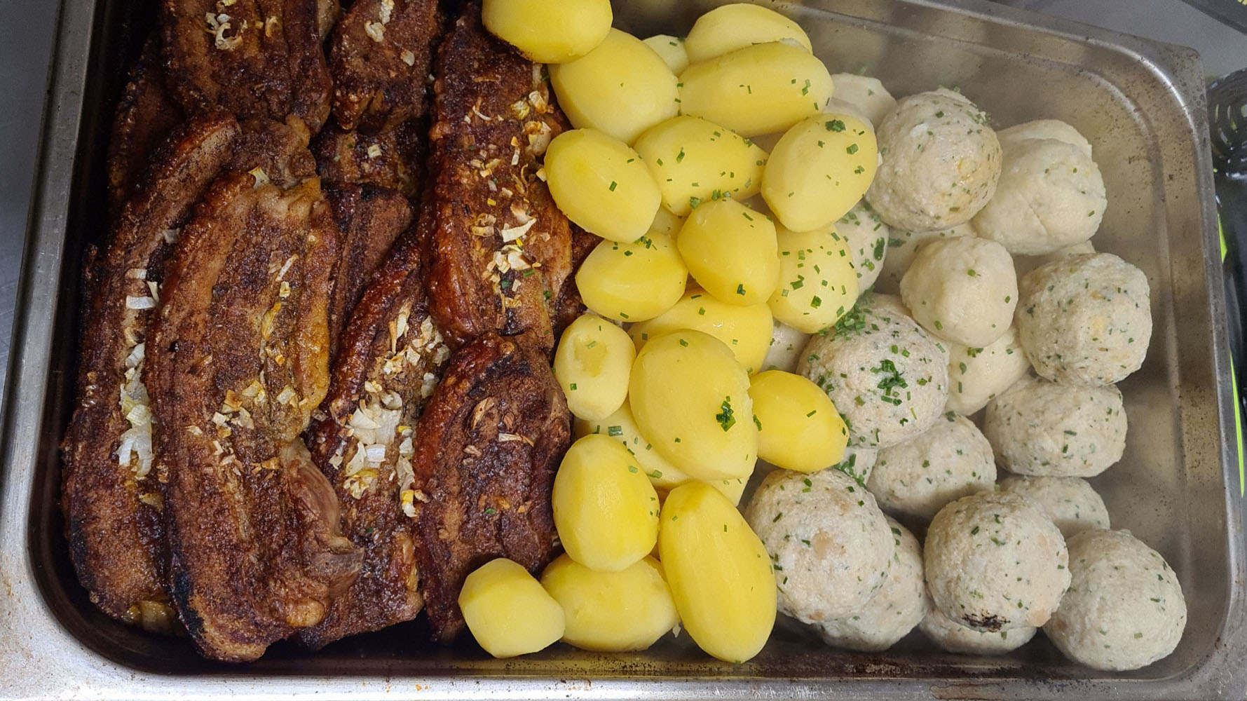 Geselchtes mit Mehlknödel und Krautsalat
